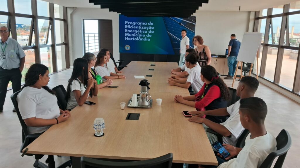 Os servidores explicaram aos jovens o Programa de Eficientização Energética, já implantado pela Prefeitura, que proporciona economia de recursos à cidade. Por meio do programa, o município utiliza energia fotovoltaica, obtida por meio de usinas instaladas em vários prédios públicos, dentre os quais o Paço Municipal.
