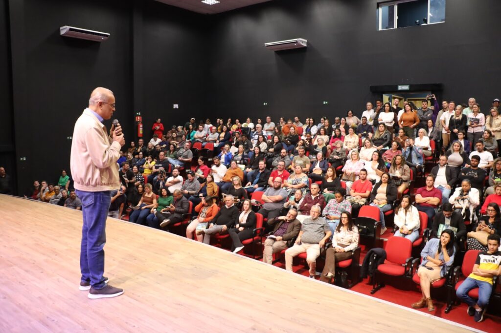 A Prefeitura de Hortolândia lançou, na noite desta quarta-feira (16/07), a série de nove “Plenárias Cidadãs” do PPA (Plano Plurianual) 2026-2029. O evento lotou o auditório do Teatro “Elizabeth Keller de Matos”, no Jardim Amanda. Segundo a Secretaria de Finanças, organizadora da cerimônia, mais de 320 pessoas compareceram, dentre elas gestores do Executivo e representantes da Câmara Municipal.