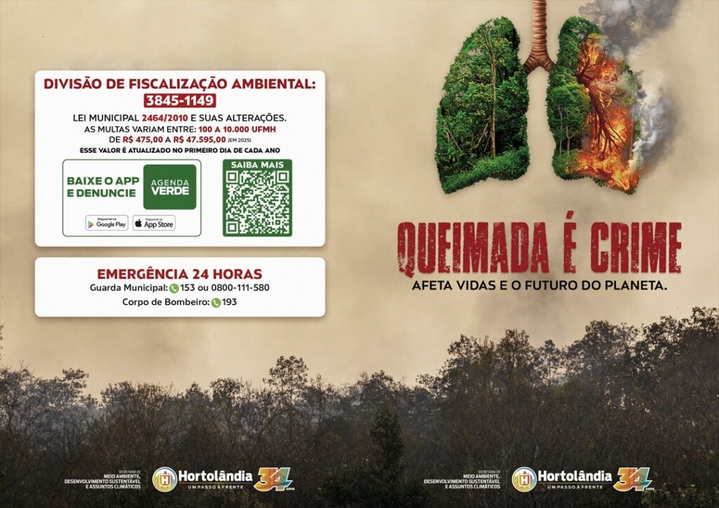 Hortolândia participa até 30 de setembro deste ano da “Operação São Paulo Sem Fogo 2025”, que promove uma série de ações integradas de prevenção, monitoramento e combate às queimadas no município. Se necessário, a “Operação” poderá ser prorrogada.