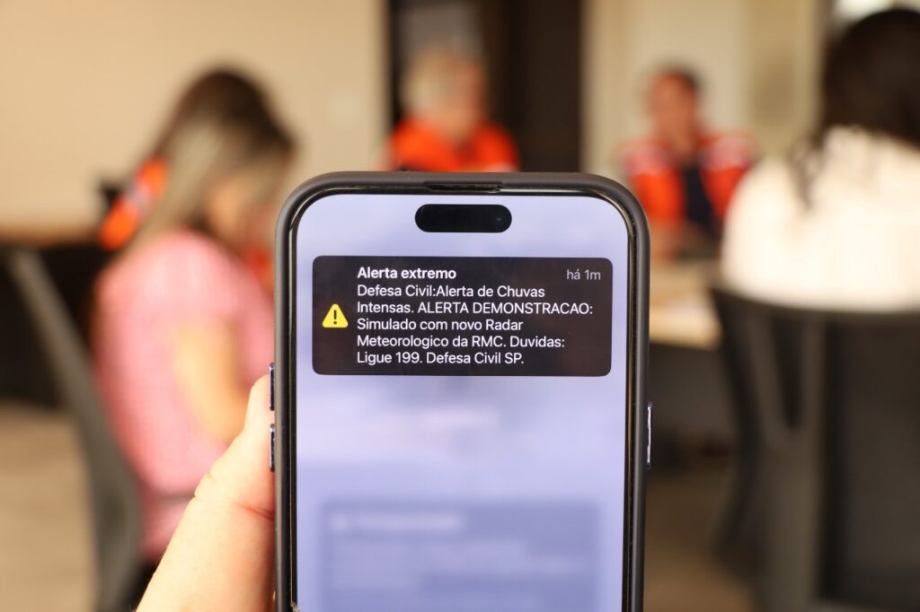 ALERTA DEMONSTRAÇÃO: Simulado com novo Radar Meteorológico da RMC. Dúvidas: Ligue 199. Defesa Civil SP.”