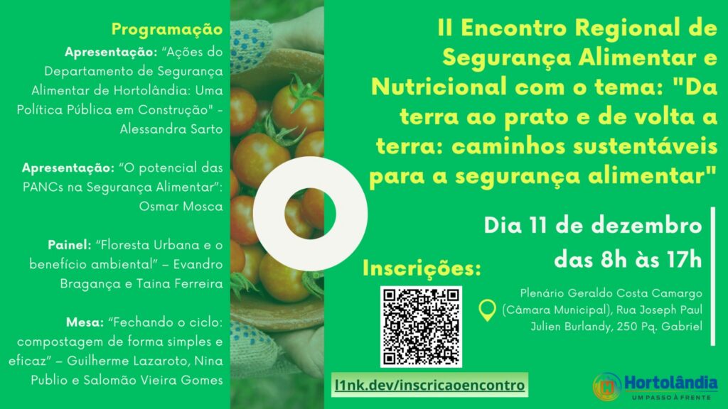 - Apresentação: Ações do Departamento de Segurança Alimentar de Hortolândia: Uma Política Pública em Construção”, com a diretora Alessandra Sarto
