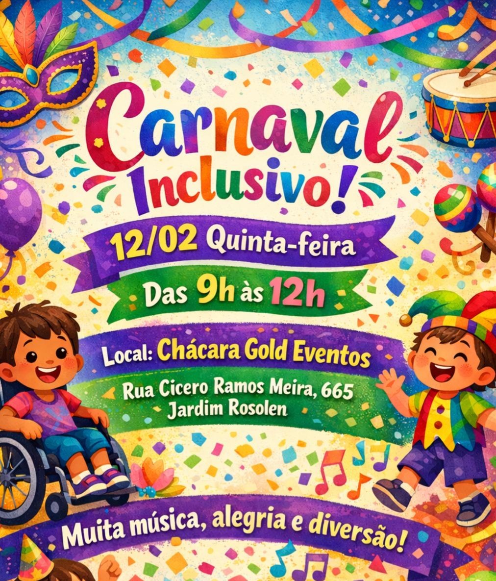 A Prefeitura de Hortolândia promoverá, nesta quinta-feira (12/02), das 9h às 12h, um baile de “Carnaval Inclusivo”. O evento, organizado pela Secretaria de Inclusão e Desenvolvimento Social, será na chácara Gold Eventos, localizada na Rua Cícero Ramos Meira, 665, no Jd. Rosolém.