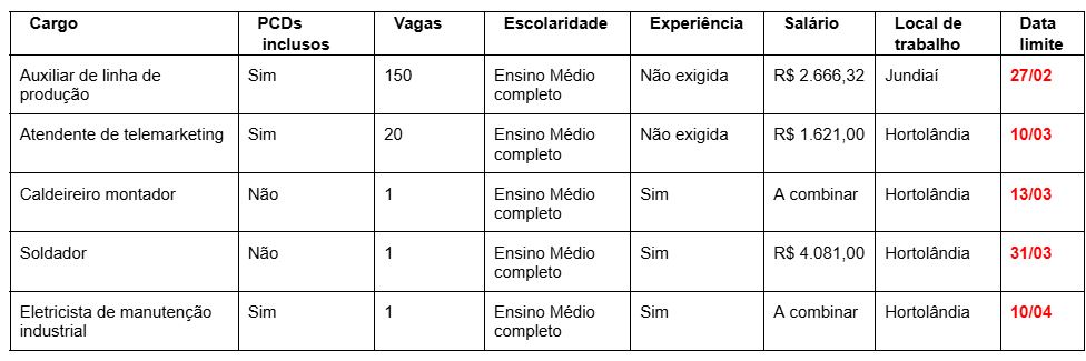 O PAT de Hortolândia reforça que as vagas ficam disponíveis até as datas limites, ou até os limites de candidatos estabelecidos pelos empregadores forem atingidos.