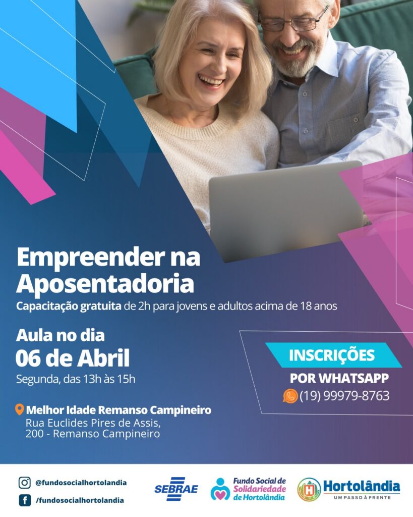 “Empreender na aposentadoria” (2 horas), em parceria com o Sebrae