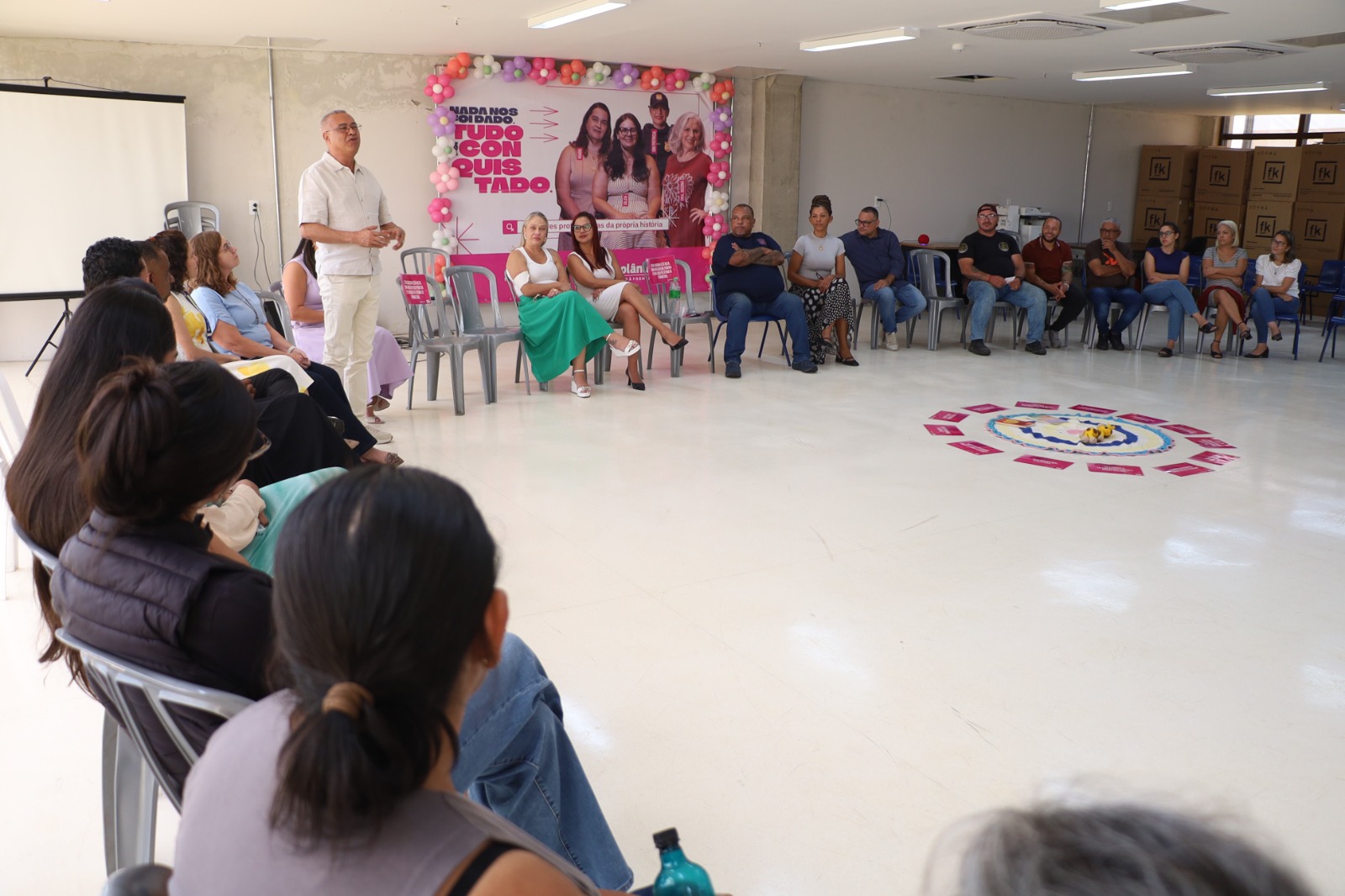Centenas de servidores públicos, homens e mulheres, participaram ao longo desta quarta-feira (25/03), de uma série de rodas de diálogo pelo Mês da Mulher no auditório do Paço Municipal Palácio dos Migrantes “Prefeito Angelo Augusto Perugini”. A atividade “Hortolândia por Elas”, promovida pela Prefeitura, por meio do Departamento de Mulheres, órgão da Secretaria de Governo, é uma das iniciativas da Administração Municipal para convocar todos para assumirem a responsabilidade sobre o combate à violência de gênero, situação que tem sofrido uma escalada na sociedade, com números cada vez mais alarmantes. O encontro contou com mediação do historiador e especialista em comunicação não-violenta, Mario Marcelo Nicodemos Ramos.