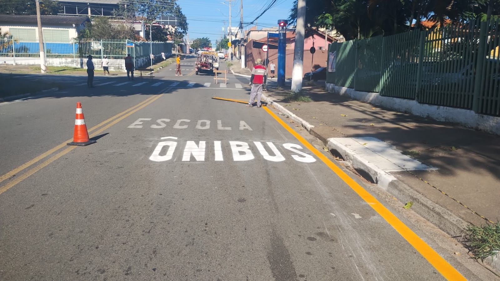 O reforço da pintura de sinalização de solo teve mais uma etapa concluída por equipes da Prefeitura de Hortolândia nesta quarta-feira (15/04), no entorno do OAPE (Observatório Ambiental Parque Escola), no Jardim Santa Clara do Lago. De acordo com a Secretaria de Mobilidade Urbana, além de organizar o fluxo do trânsito no local, principalmente em dias de maior movimento na área de lazer, o trabalho tem o objetivo de evitar acidentes e facilitar o embarque e desembarque de passageiros dos veículos do transporte público.