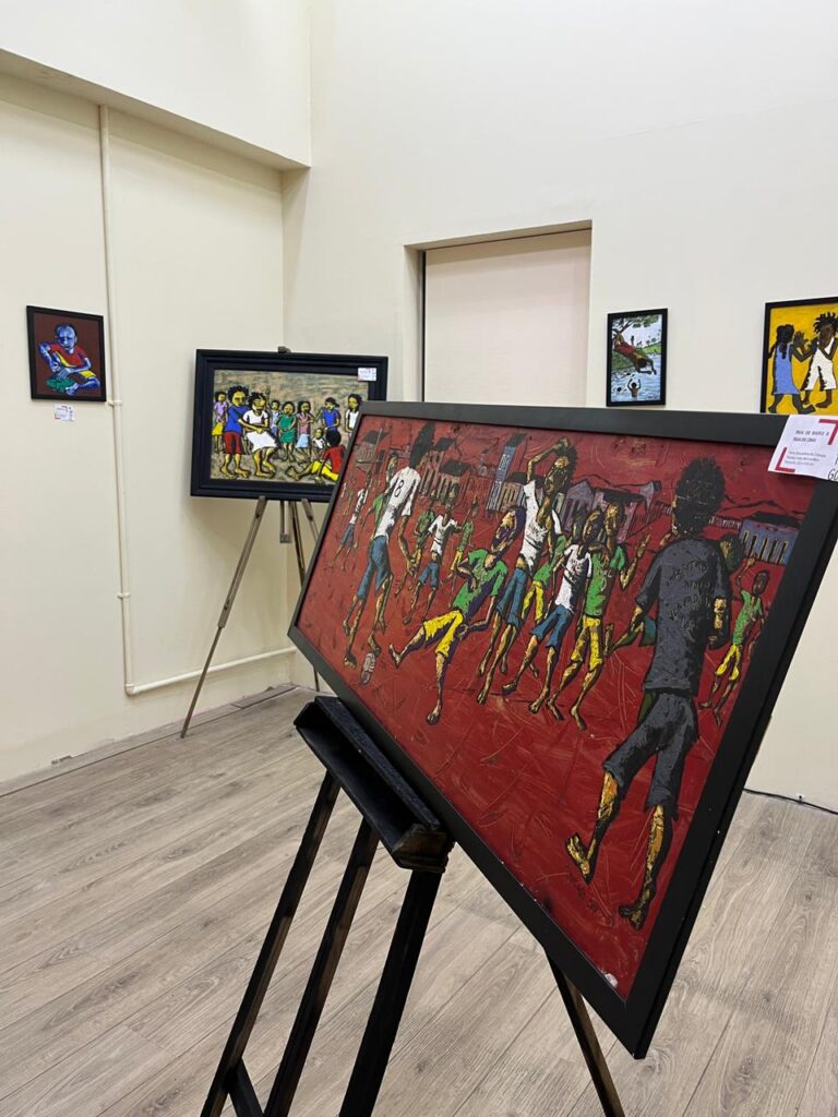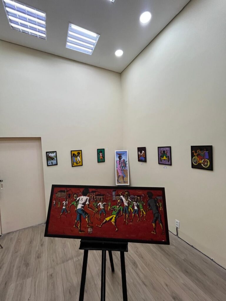 A exposição apresenta 17 obras do artista plástico M. Santiago. Por meio dos trabalhos, o artista propõe um mergulho no imaginário infantil para resgatar a memória afetiva dos adultos. As obras evocam cenas de crianças brincando de bola, nadando em rio e andando de bicicleta.M. Santiago é um artista de Hortolândia e colaborador do Centro Afroempresarial, órgão da Secretaria de Desenvolvimento Econômico, Trabalho, Turismo e Inovação. Iniciou sua carreira em 1986. Desde então, já teve suas obras expostas no Brasil e em outros países. Seus trabalhos ainda integram os acervos de importantes instituições artístico-culturais da região.