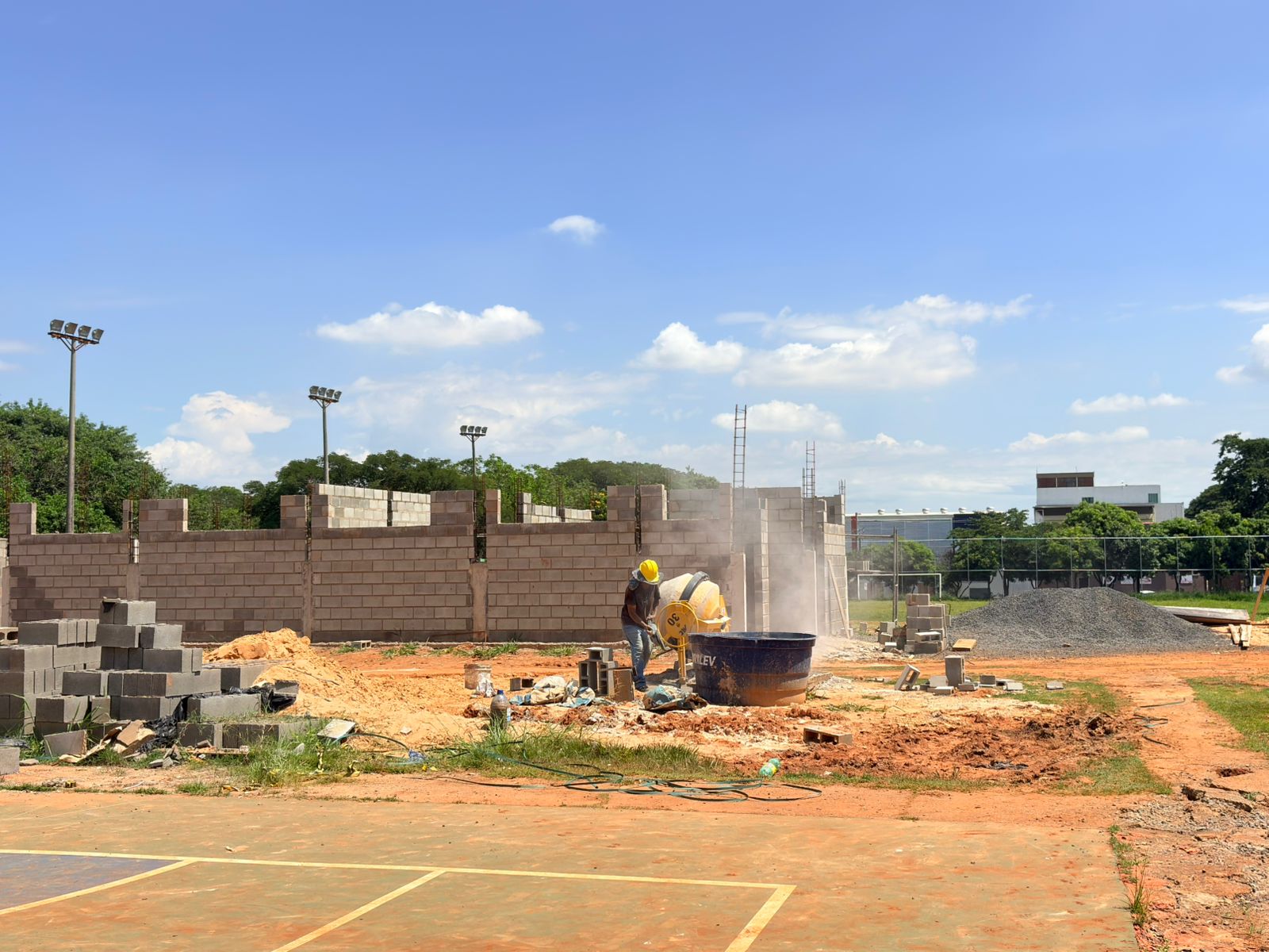 De acordo com a Secretaria de Obras, ao lado do campo da Mina está em andamento a construção do vestiário, que terá instalações adequadas para recepcionar dois times e a arbitragem, separadamente. Nesta semana, o trabalho é o de levantamento das paredes de alvenaria. Com a finalização, as lajes serão concretadas. Também está em construção uma escadaria de acesso do campo aos vestiários. Futuramente, uma rampa será instalada no acesso ao campo, facilitando a entrada de ambulância, por exemplo.