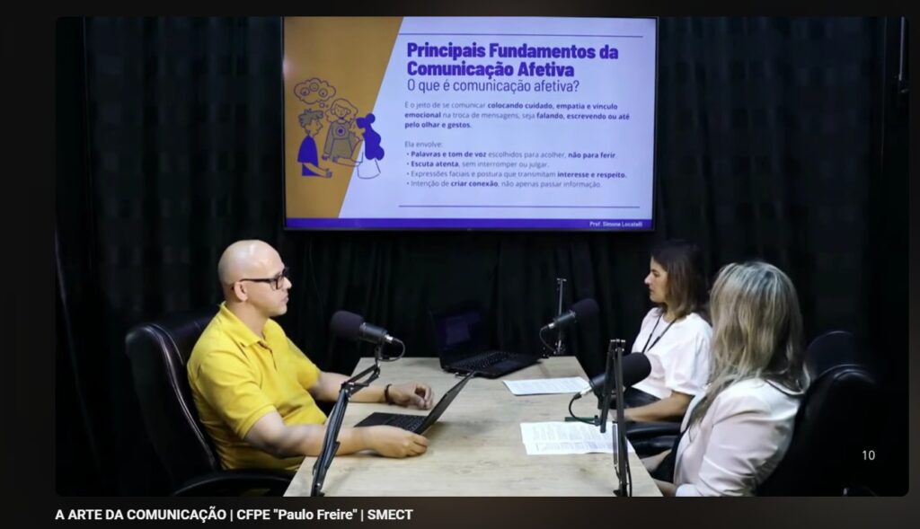 No dia 26 de setembro, foi lançado o episódio especial do podcast “A Arte da Comunicação”, com a participação da pedagoga Simone Locatelli e da psicóloga Fernanda de Lourdes de Freitas. A formação online aconteceu para mais de 2 mil profissionais de educação da rede municipal.