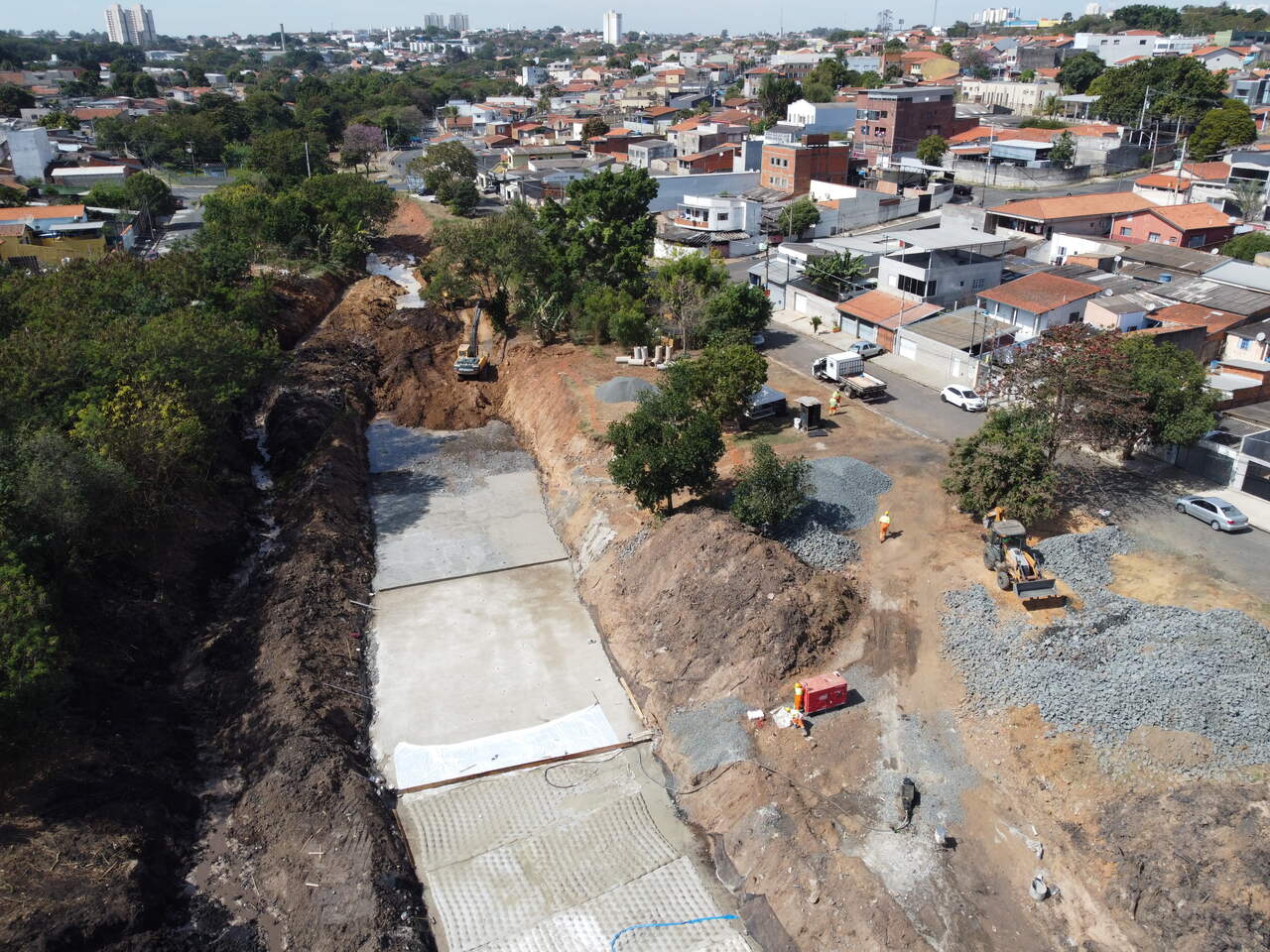 Empresa contratada pela Prefeitura executa canalização de um trecho do Ribeirão Jacuba que atravessa a área do futuro parque Hortolândia continua com ações para oferecer…