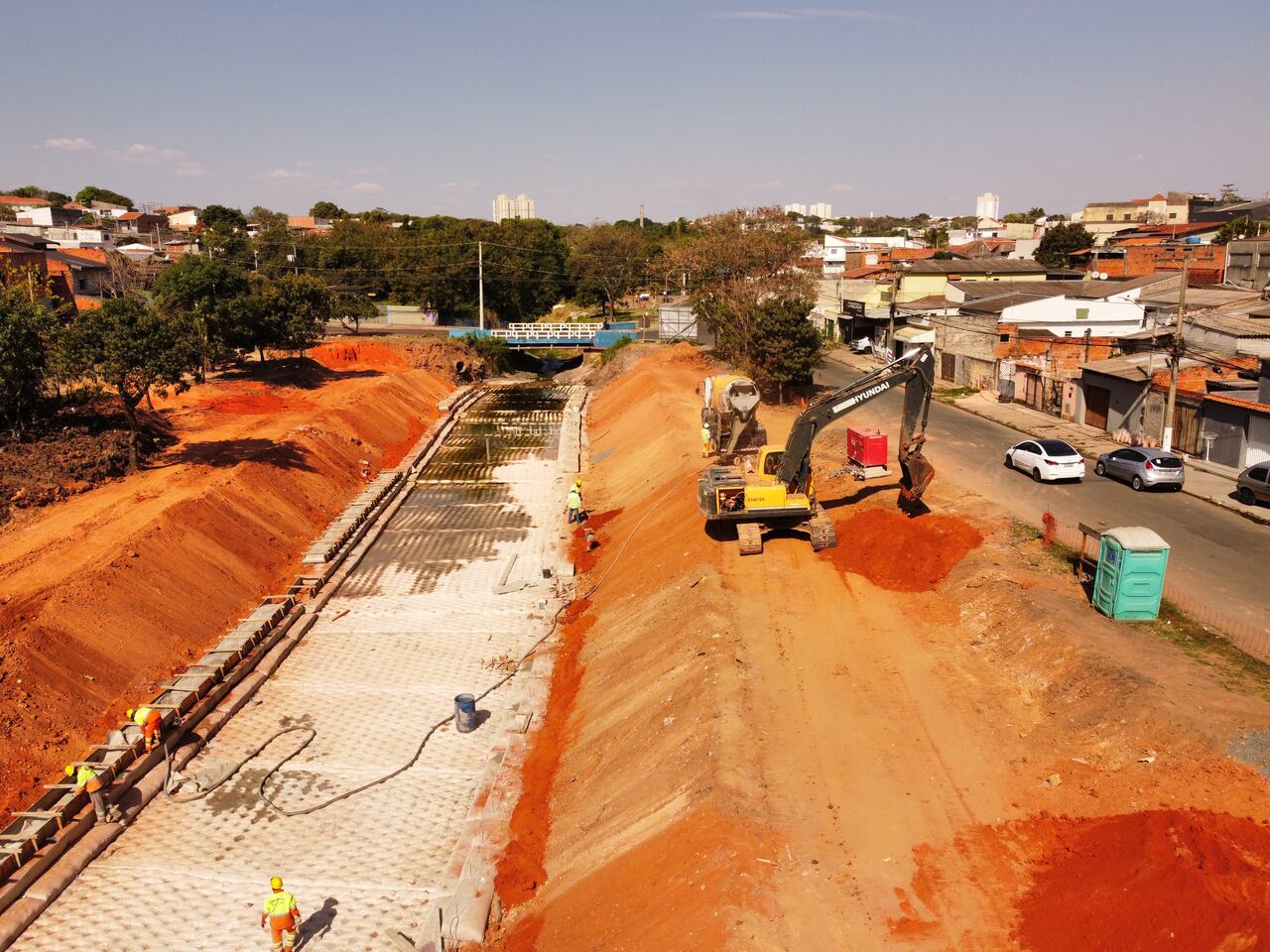 Empresa contratada pela Prefeitura executa terraplanagem da beira do córrego para implantação do talude, esta semana Hortolândia segue firme com a obra do futuro parque…