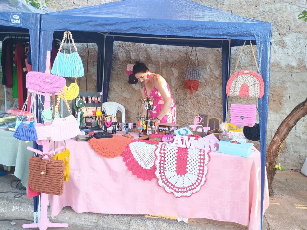 Atualmente, há 15 empreendedores locais vendendo seus produtos na feira. Além das barracas de comidas, que vendem pastéis, lanches, churros, acarajé e cachorro quente, há também as que vendem artigos em pano, de uso pessoal ou para casa, como prendedores de cabelo, mochilas, necessaires, porta-coador de café e puxa-saco, produtos em crochê, caixas decoradas e esculturas em biscuit, retratando personagens infantis para decoração de quarto de crianças e jovens ou cenários para festa de aniversário.