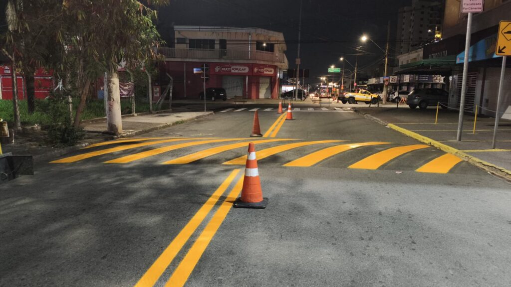Equipes da Administração Municipal também concluíram as etapas de reforço da segurança viária na avenida dos Estudantes. O reforço na sinalização de solo foi realizado na madrugada desta quarta-feira (19/11) em toda a extensão da via, contribuindo no acesso tanto para a avenida da Emancipação quanto no sentido Jardim Campos Verdes. Em frente ao antigo prédio da UBS (Unidade Básica de Saúde) Santa Clara, a rotatória de concreto, que contribui na organização e fluidez do tráfego foi reimplantada após ações da Prefeitura para consertar o dispositivo que havia sido danificado. A estrutura foi reformada. De acordo com a Secretaria de Mobilidade Urbana, a rotatória facilita o deslocamento na movimentada via, contribuindo também no controle da velocidade permitida para o tráfego.