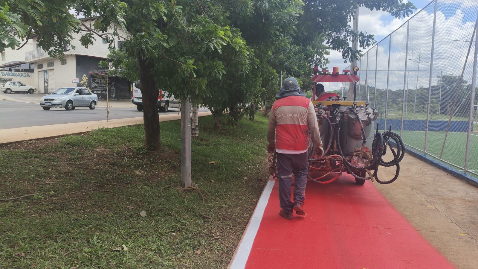 Prefeitura executa serviço em trecho de 1 km da primeira etapa da obra do parque já entregue; calçada ao longo da via também receberá pintura …