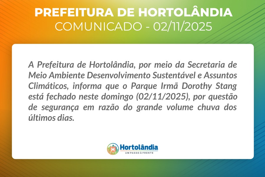 A Prefeitura de Hortolândia, por meio da Secretaria de Meio Ambiente Desenvolvimento Sustentável e Assuntos Climáticos, informa que o Parque Irmã Dorothy Stang está fechado…