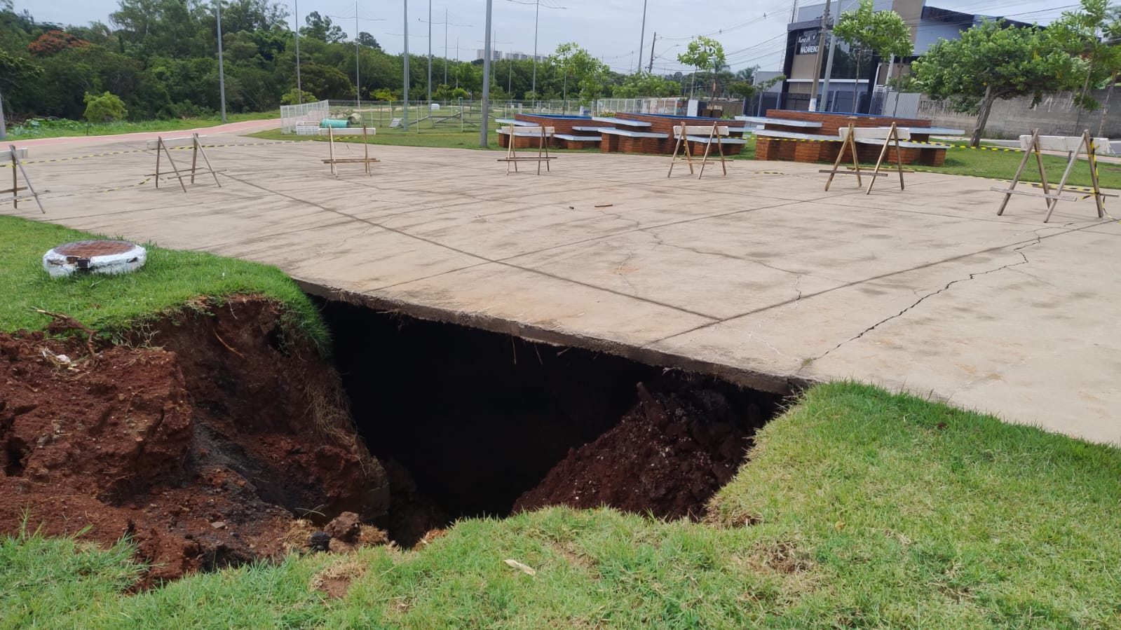 Conforme o secretário, com o rompimento da tubulação de águas pluviais, a chuva infiltrou pelo solo e causou a erosão. “Sinalizamos a área e interditamos este trecho, para segurança dos munícipes e para preservar as instalações. A Construmedici deve realizar todo o serviço necessário para correção dos danos, desde a troca da tubulação rompida, colocação de nova terra, compactação de solo, plantio de grama e concretagem de calçadas”, afirmou Torrecillas. Apenas após o início destes trabalhos é que será possível dimensionar o prazo previsto para a conclusão da manutenção.