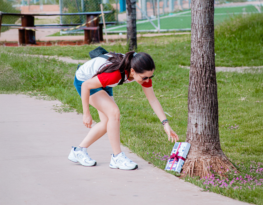 Imagine que você está caminhando e, de repente, encontra um livro embrulhado para presente.