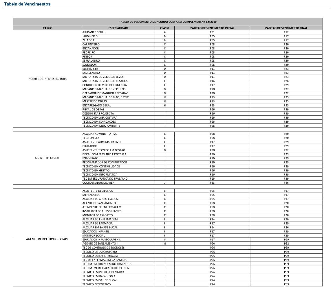 Tabela de Vencimentos Lei Complementar 12 (7,679%)